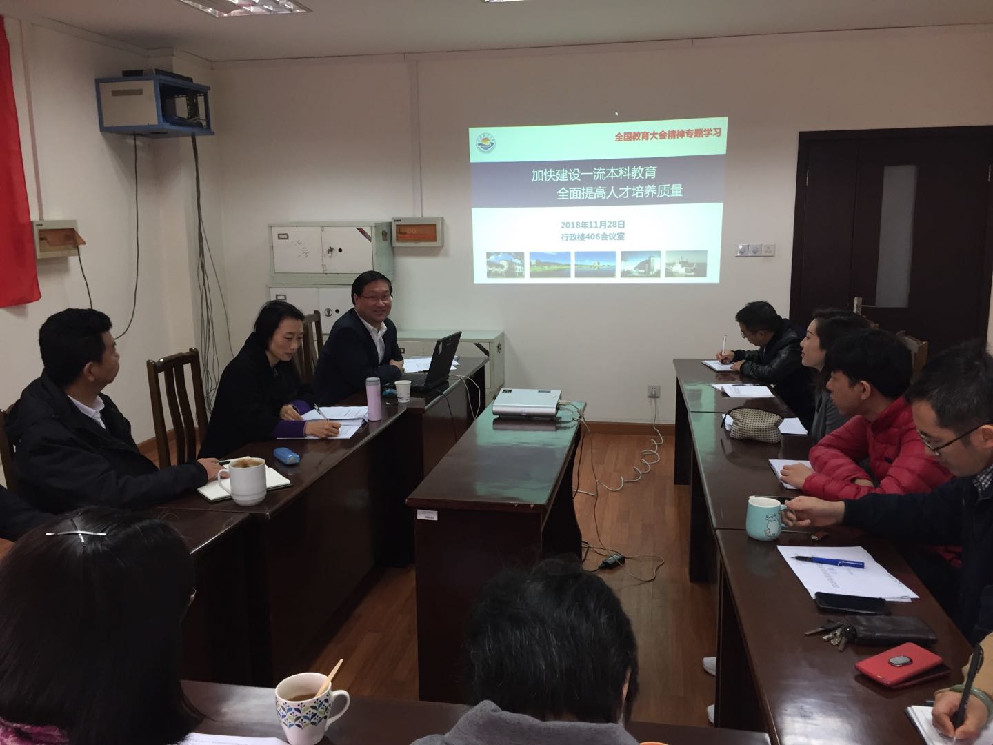 为帮助学院深刻领会全国教育大会精神、深刻领会习近平在首届中国国际进口博览会开幕式上发表的主旨演讲和视察上海时重要讲话精神,提高认识,推动学院发展,落实学校巡视整改反馈中学习环节的不足,11月29日上午,beat365唯一官方网站在军工路校区召开了全院大会,校党委副书记吴建农进行了主题报告,会议由学院总支书记郭亚贞主持。