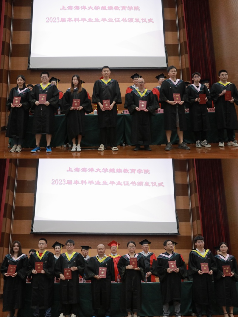 与会的校学位评定委员会成员为获得学位的毕业生依次拨穗,与会的领导和嘉宾向到场的全体毕业生颁发毕业证书,仪式上还表彰了学院2023届“优秀学生”,社会协同与校友事务处副处长林海悦向新聘任的2023届校友联络大使颁发了聘任证书。