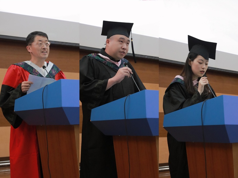 优秀学生代表、行政管理专业学生王康妮代表全体毕业生表达了对母校、老师感激之情,表示将践行校训,把自己的小我融入祖国的大我,成为堪当民族复兴重任的时代新人!